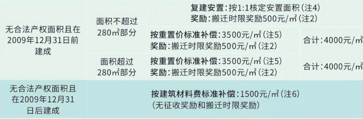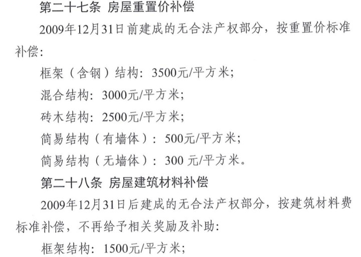 对比市区的另一个旧改初步补偿方案,09年前建成的无合法产权面积只补4000元/平,而在09年后建成的只补1500元/平材料费,无任何奖励。