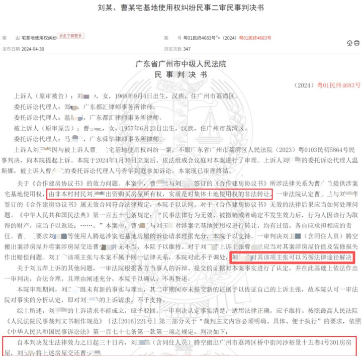 1998年,刘某买下村民曹某土地上建成的房子。在后续2020年的征拆中,街道也是与曹某签订补偿协议,曹某依法要求刘某腾退房屋。刘某的权益只能另寻途径解决。