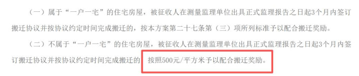 当然,这个高额补偿方案并不是无限延续的,一个是限时搬迁奖励会消失,钱会越来越少。